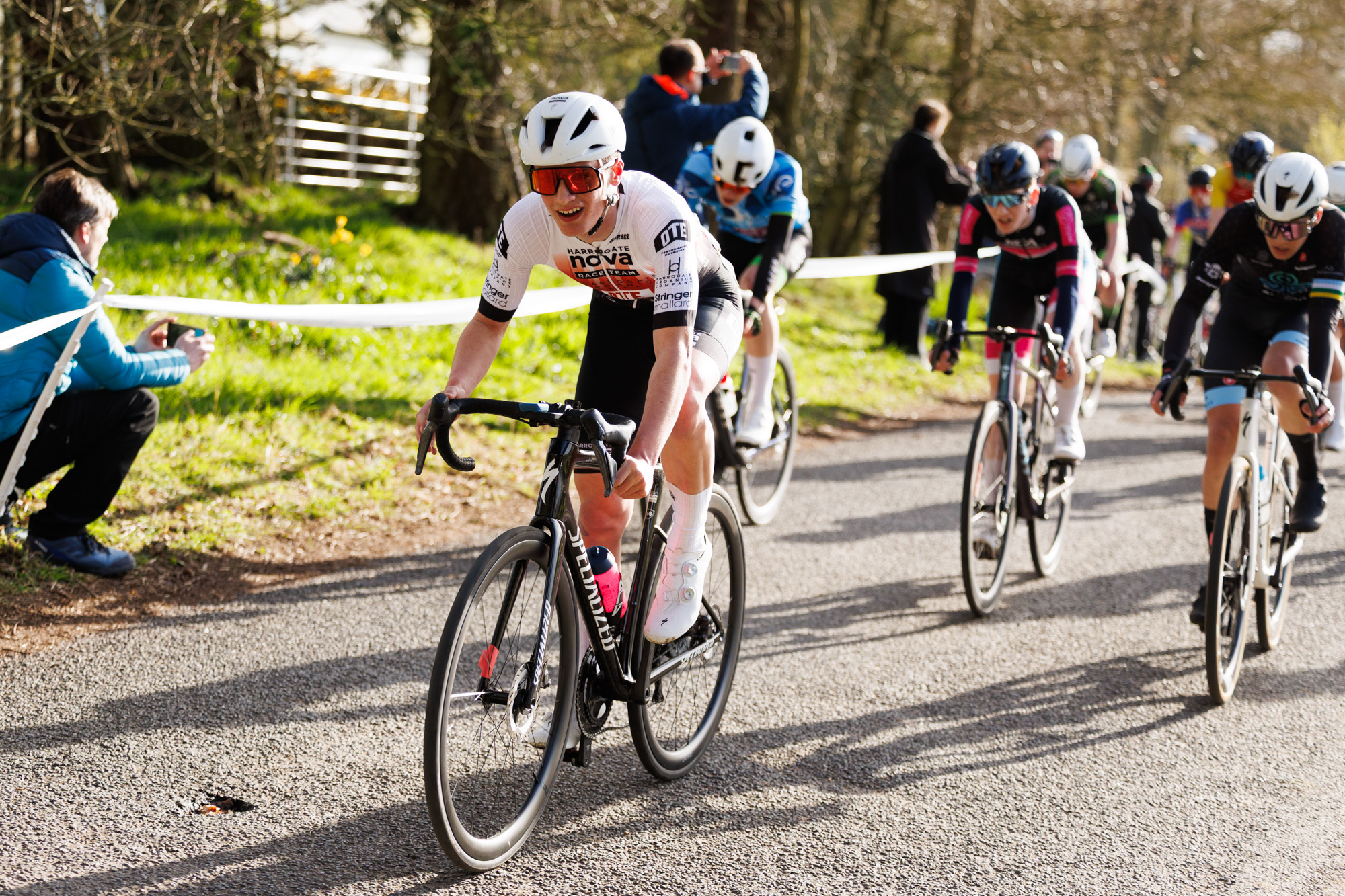 Daniel Shipton (Harrogate Nova) and the yellow jersey of Daniel Minay (Team 360 Isle of Man) would be notable in their presence at the front of the race.